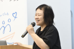 小口浩美さん(一般社団法人LINKOS 共同代表)は、「がん教育を当事者視点で考える」と題して、がん教育の現状と課題についてお話ししました。がん教育とは、学習指導要領に記載されている健康教育の一環であり、学校で行われる自他の健康と命の大切さを学ぶ授業のこと。学校にはおよそ140の教育テーマがあり、その中の一つに位置づけられています。小口さんは、他の教育テーマとも融合させて、経験したからこそ伝えられる大切なメッセージを届けていきたいと考えているとのことでした。そのためには、単に経験を語るのではなく、「何を伝えたいのか」「何を知ってもらいたいのか」という明確なメッセージを意識することが重要だと強調しました。最後に、「誰のためのがん教育か」という原点を忘れずに、これからも種をまき、芽を育てていく思いで取り組んでいきたいと語りました。